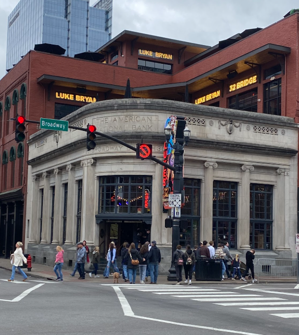 Tootsie's Orchid Lounge (the lavender building in the images)—This bar has 3 floors, 3 bars, and 3 stages for bands to perform. It’s one of the biggest, oldest, and most famous bars on Broadway and is always packed with people. Country artists like Willie Nelson and Patsy Cline played here. It’s also located right next to the Ryman Auditorium!